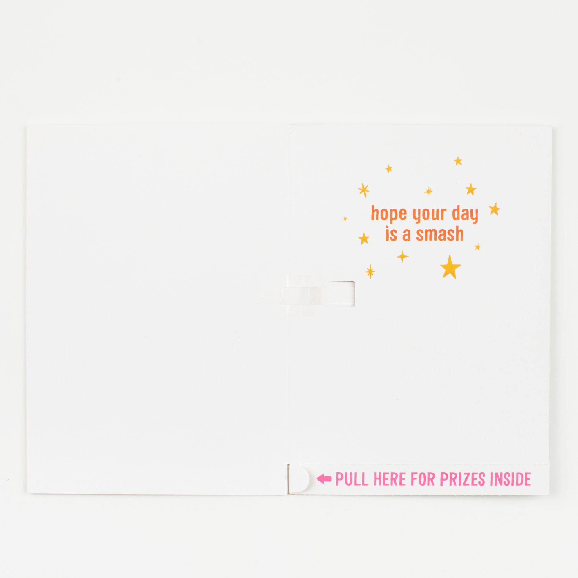 - Pull the bottom strip to get stickers and glitter & the card keeps playing!